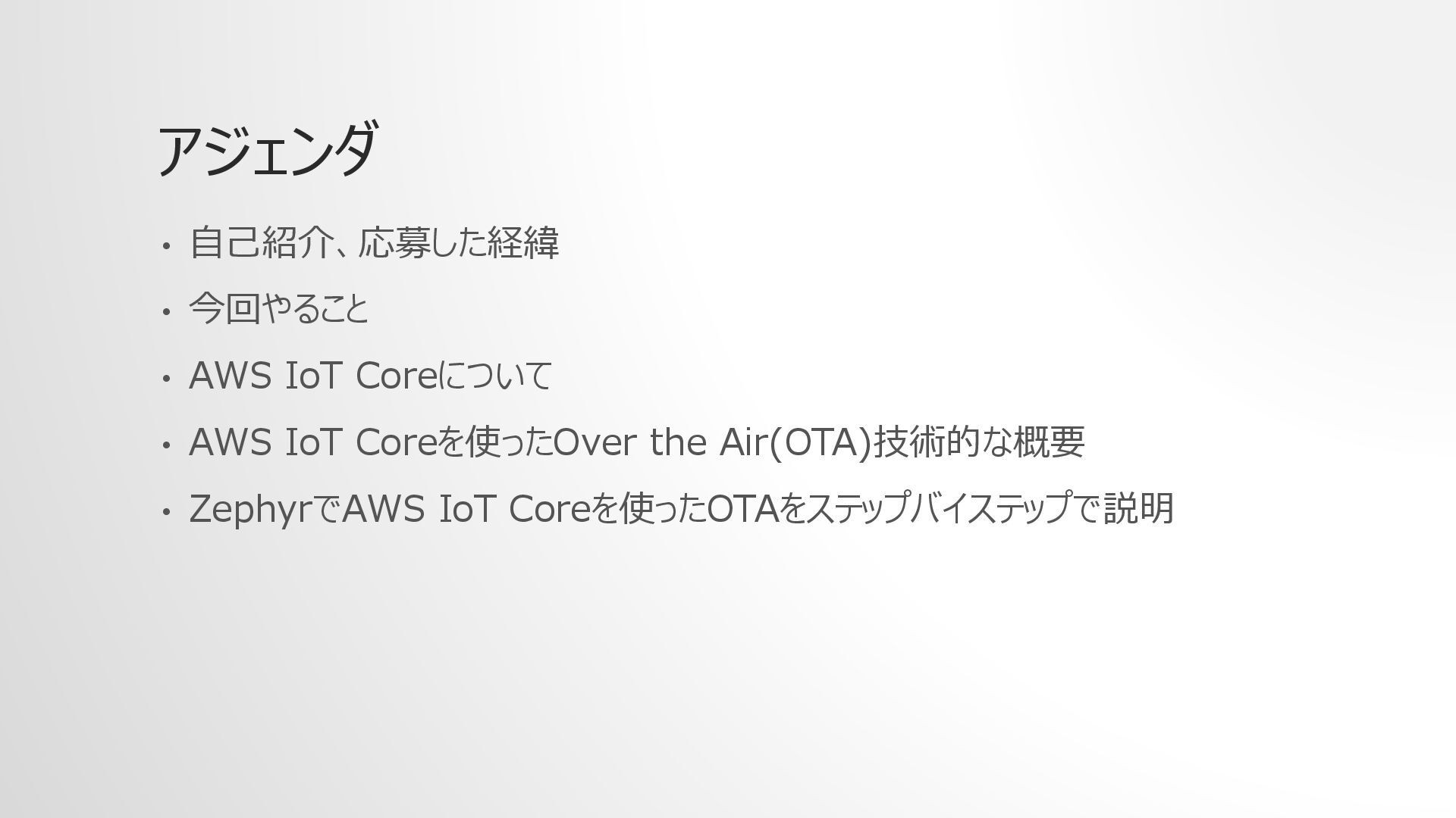 AWS IoT Coreを使ったOver the Air(OTA)技術的な概要 • ZephyrでAWS IoT Coreを使ったOTAをステップバイステップで説明