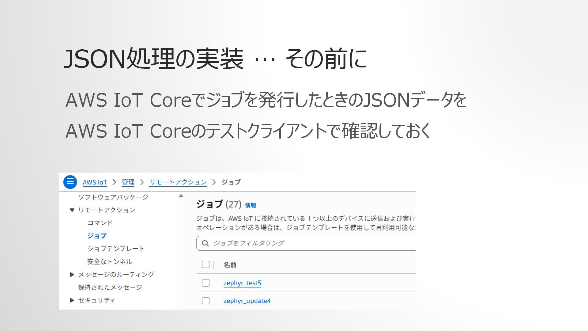 JSON処理の実装 … その前に AWS IoT Coreでジョブを発行したときのJSONデータを AWS IoT Coreのテストクライアントで確認しておく