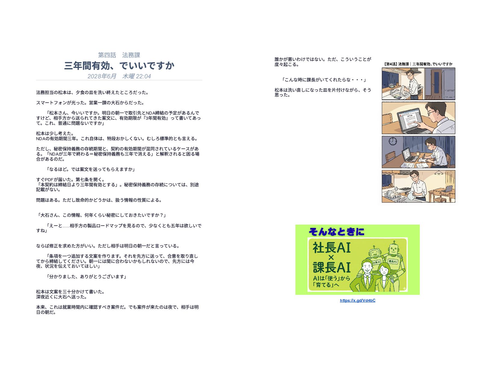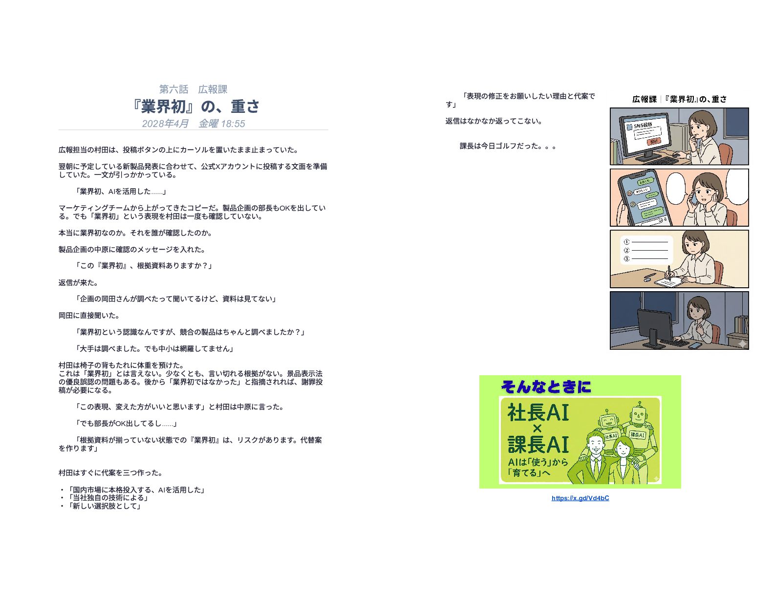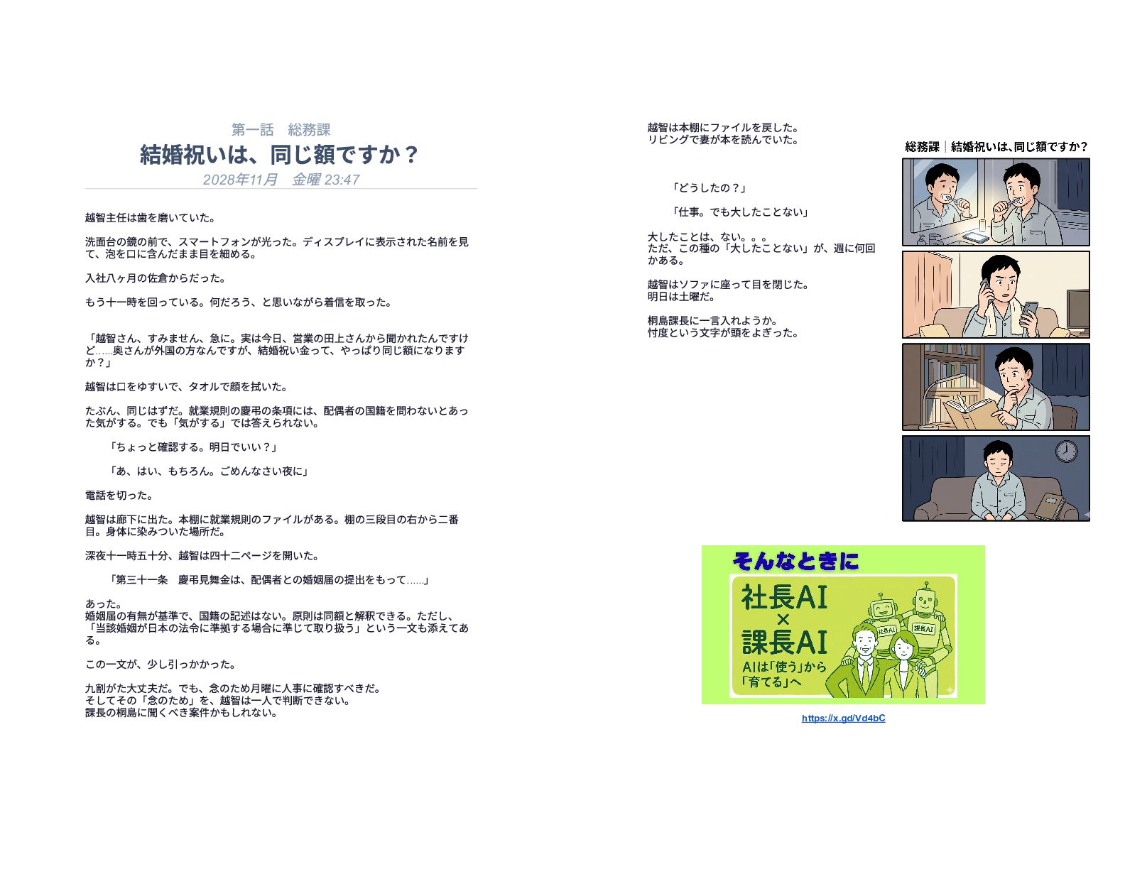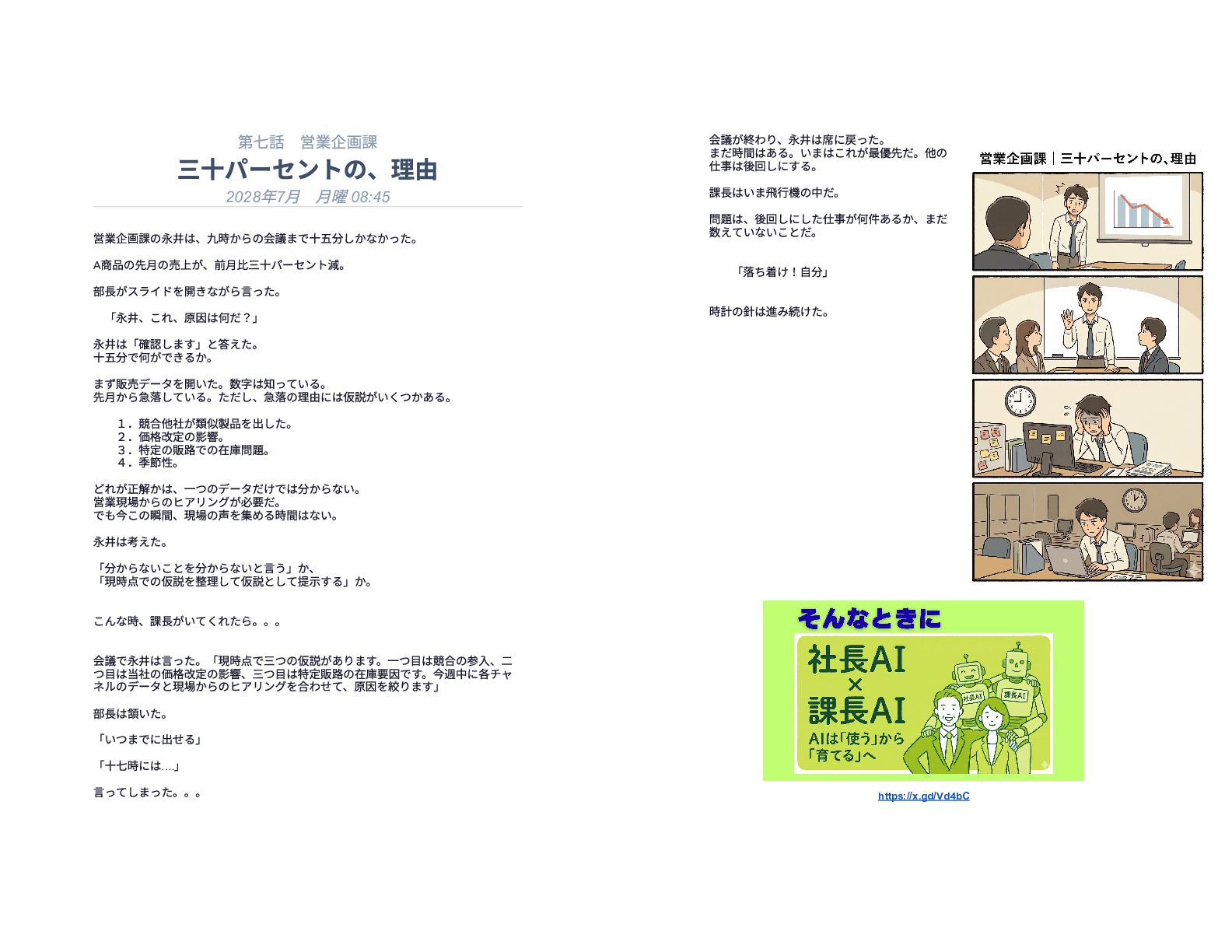 企業の様々な部署で働くリーダー層が直面する、孤独で責任重大な判断の瞬間を15の短編エピソードで描いています。総務や経理、情報システムなどの現場では、深夜や週末であってもマニュアル化できない複雑な課題が突発的に発生し、担当者は不在の課長に代わって一人で決断を下さなければなりません。各物語は、専門知識や過去の経緯といった個人の「暗黙知」に頼り切っている業務現場の危うさを浮き彫りにしています。最終的に本書は、こうした現場の判断の停滞を防ぐための解決策として、AIを活用した仕組み作りの重要性を提言しています。知識を共有し、誰もが迷わず動ける組織を目指すためのビジネス寓話集です。