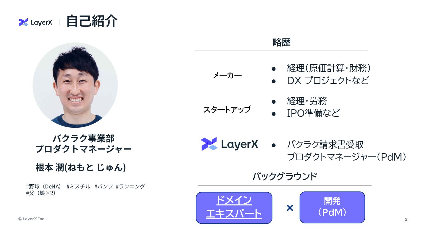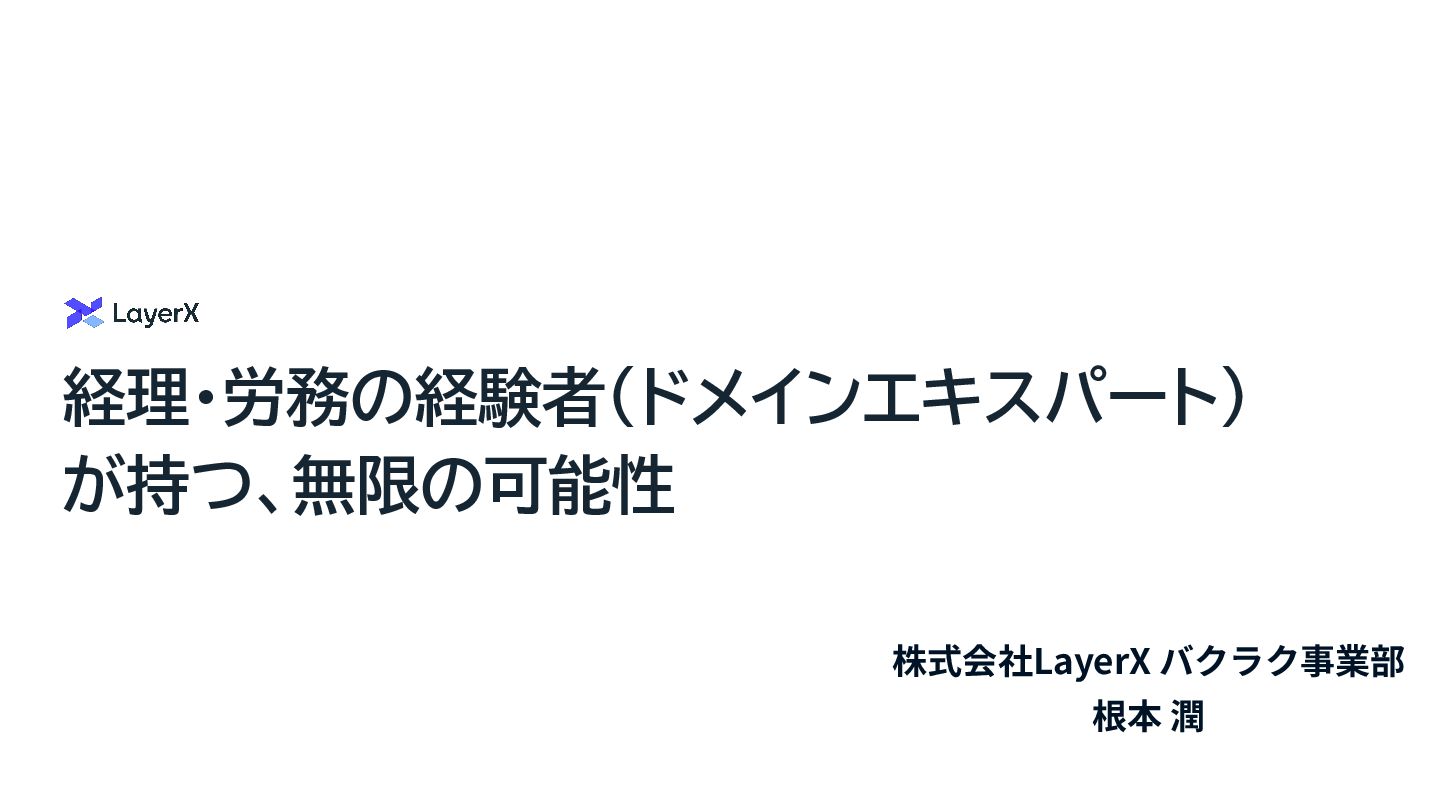 © 2023 LayerX Inc. 経理・労務の経験者(ドメインエキスパート) が持つ、無限の可能性 株式会社LayerX バクラク事業部 根本 潤