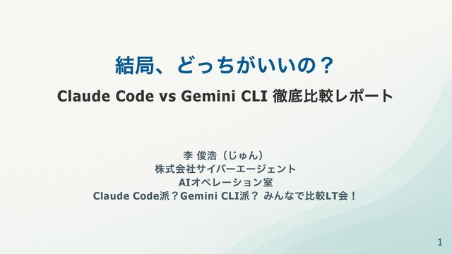 (web_search) ◎ ( 検索結果良好) 最新リサーチに基づく資料作成 に威力。 マルチモー ダル △ ( 画像のみ) ◎ ( 画像/PDF/ 動 画) 複数フォーマットのサポート。 自律性 ◎ ( 計画・実行) ◦ ( 指示に忠実) 「これを直しといて」が可能。 IDE 連携 △ ( 深い統合) △ (Code Assist 経 由) どっちも微妙 Git 操作 ◎ ( 専用コマンド) △ ( シェル経由) Claude はPR 作成まで自動化。 カスタマイ ズ ◎ (Hook ・Slash Command) △ ( 未対応) ワークフローの自動化 13