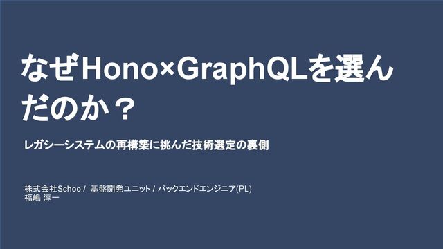 株式会社Schoo / 基盤開発ユニット / バックエンドエンジニア(PL) 福嶋 淳一 なぜHono×GraphQLを選ん だのか? レガシーシステムの再構築に挑んだ技術選定の裏側