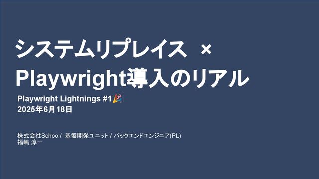 株式会社Schoo / 基盤開発ユニット / バックエンドエンジニア(PL) 福嶋 淳一 システムリプレイス × Playwright導入のリアル