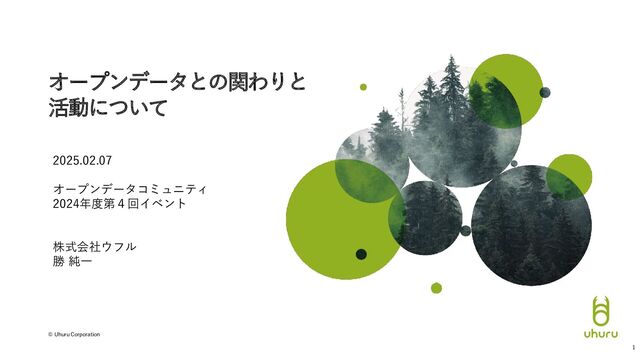 © Uhuru Corporation オープンデータとの関わりと 活動について 1 2025.02.07 オープンデータコミュニティ 2024年度第4回イベント 株式会社ウフル