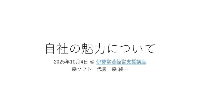 自社の魅力について 2025年10月4日 @ 伊勢常若経営支援講座 森ソフト 代表 森 純一