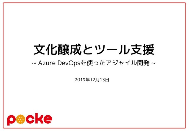 マスタ タイトルの書式設定 マスタ サブタイトルの書式設定 文化醸成とツール支援 ~ Azure DevOpsを使ったアジャイル開発 ~ 2019年12月13日