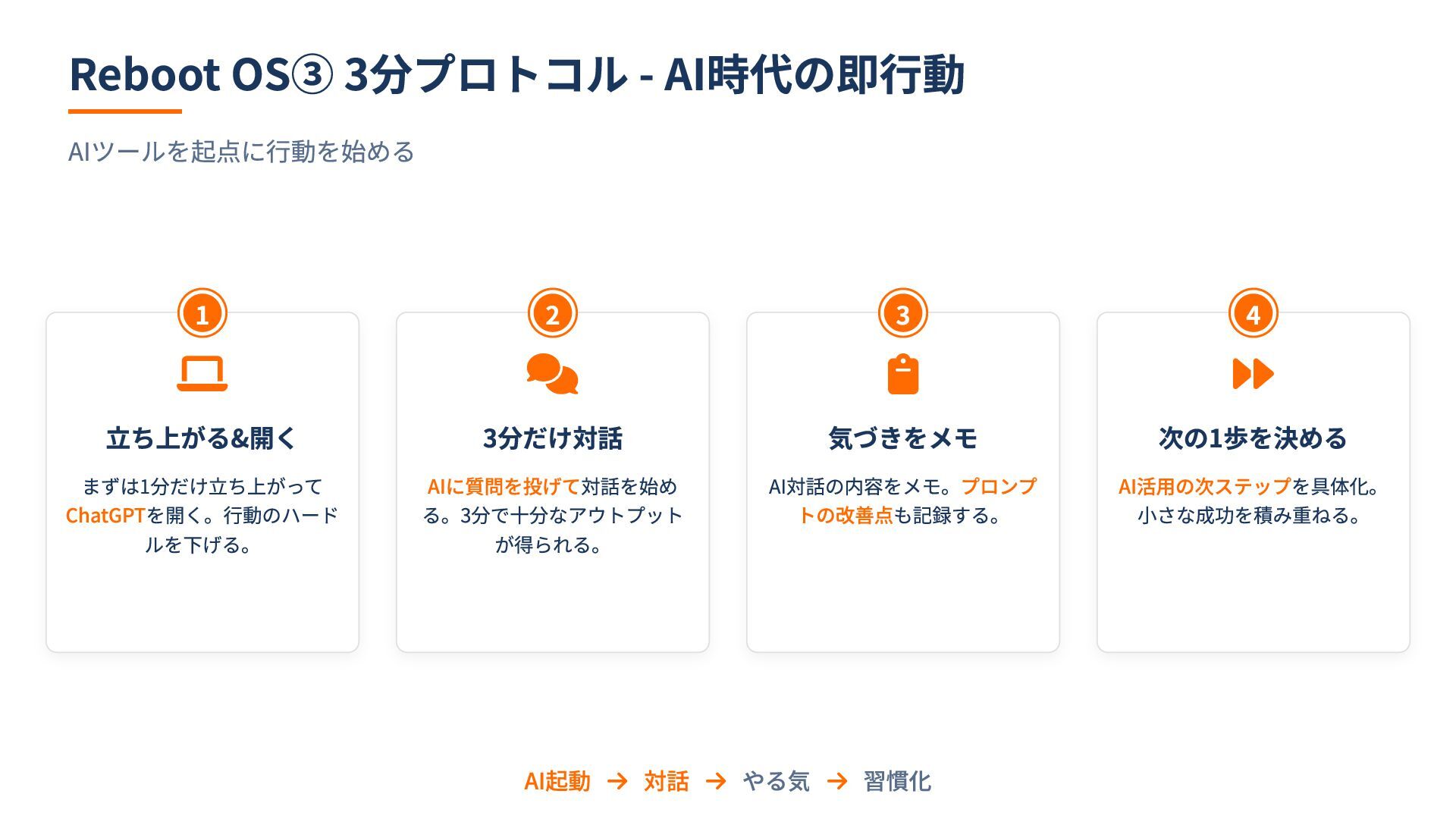 AIツールを起点に行動を始める Reboot OS③ 3分プロトコル - AI時代の即行動 AI起動 対話