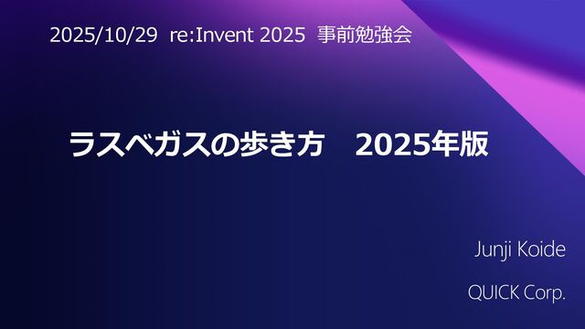 ラスベガスの歩き方 2025年版 2025/10/29 re:Invent 2025 事前勉強会 Junji Koide QUICK Corp.