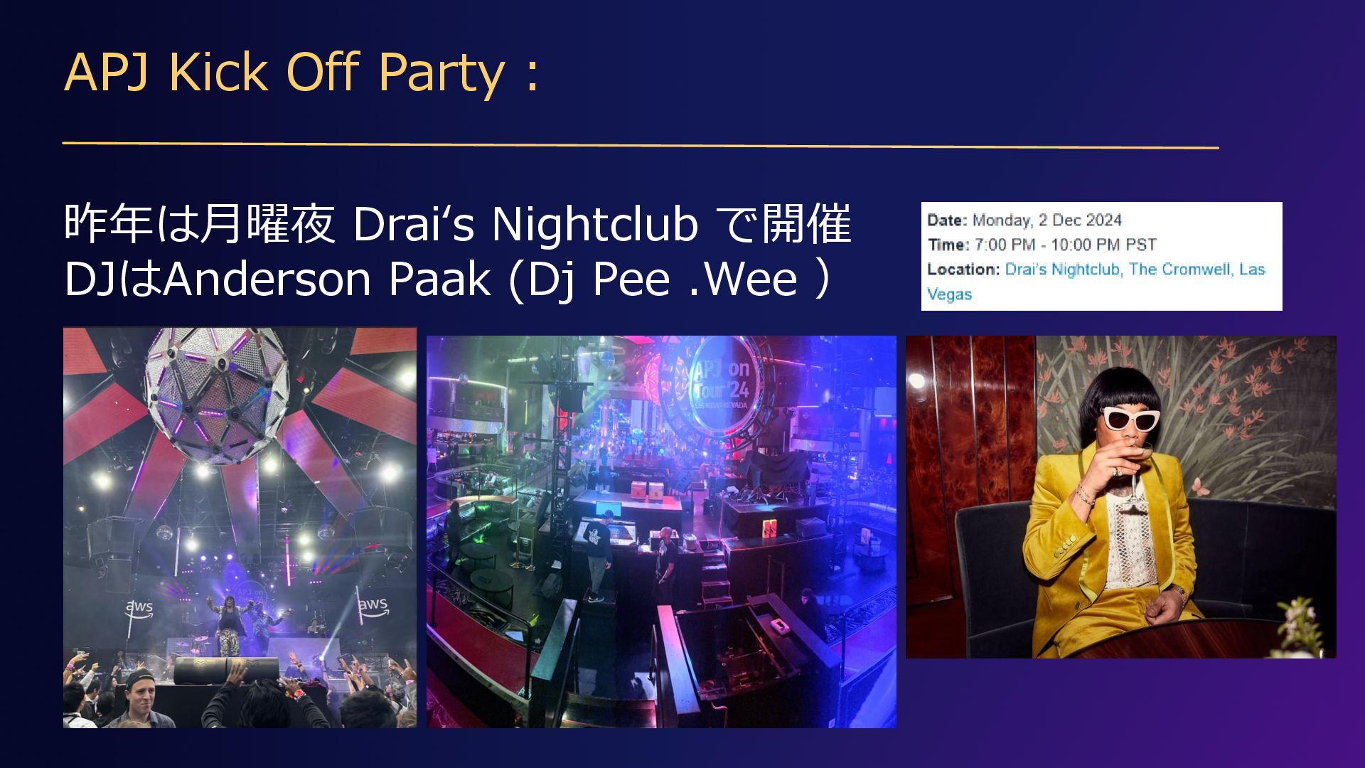 APJ Kick Off Party: 昨年は月曜夜 Drai‘s Nightclub で開催 DJはAnderson Paak