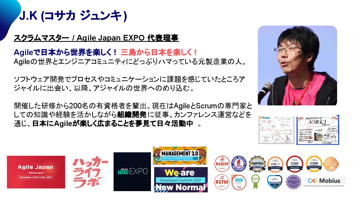 J.K (コサカ ジュンキ) スクラムマスター / Agile Japan EXPO 代表理事 Agileで日本から世界を楽しく!