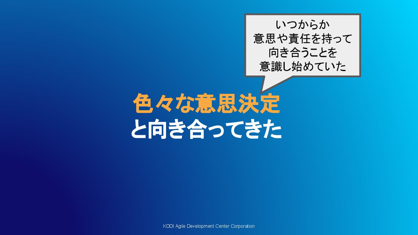 KDDI Agile Development Center Corporation 色々な意思決定 と向き合ってきた いつからか 意思や責任を持って 向き合うことを