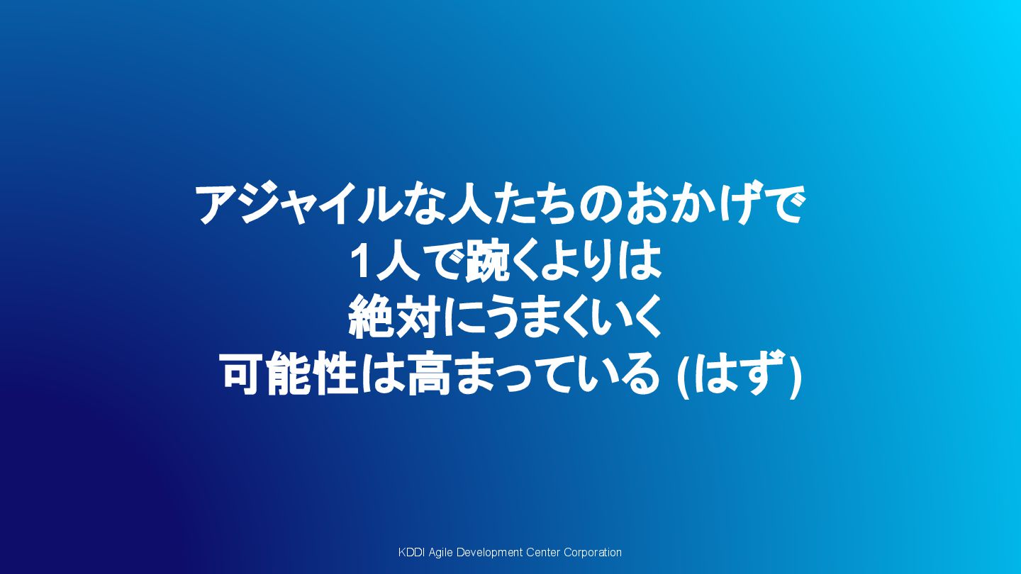 KDDI Agile Development Center Corporation アジャイルな人たちのおかげで 1人で踠くよりは 絶対にうまくいく 可能性は高まっている (はず)