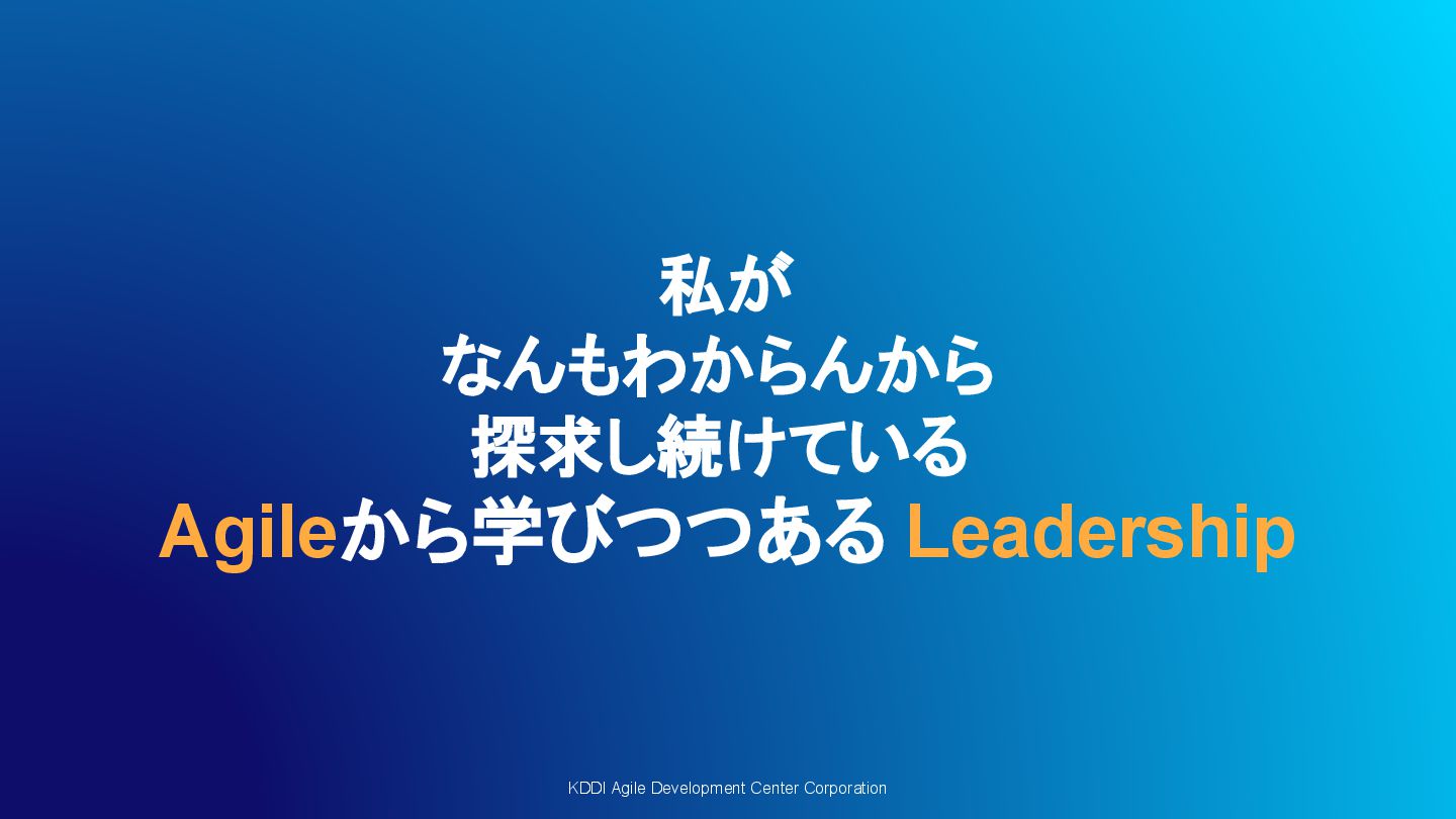 KDDI Agile Development Center Corporation 私が なんもわからんから 探求し続けている Agileから学びつつある Leadership