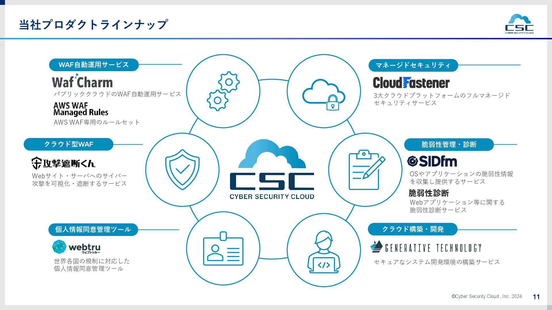 7. 11 ©Cyber Security Cloud , Inc. 2024 当社プロダクトラインナップ 脆弱性診断 Webサイト・サーバへのサイバー