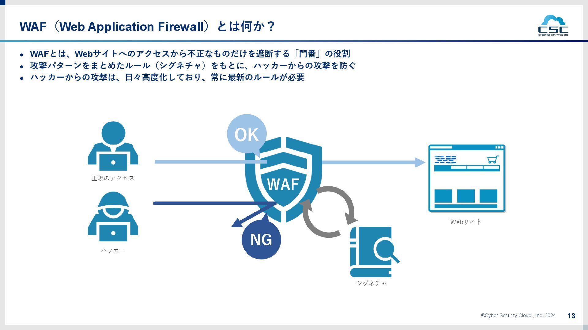 9. 13 ©Cyber Security Cloud , Inc. 2024 WAF(Web Application Firewall)とは何か?