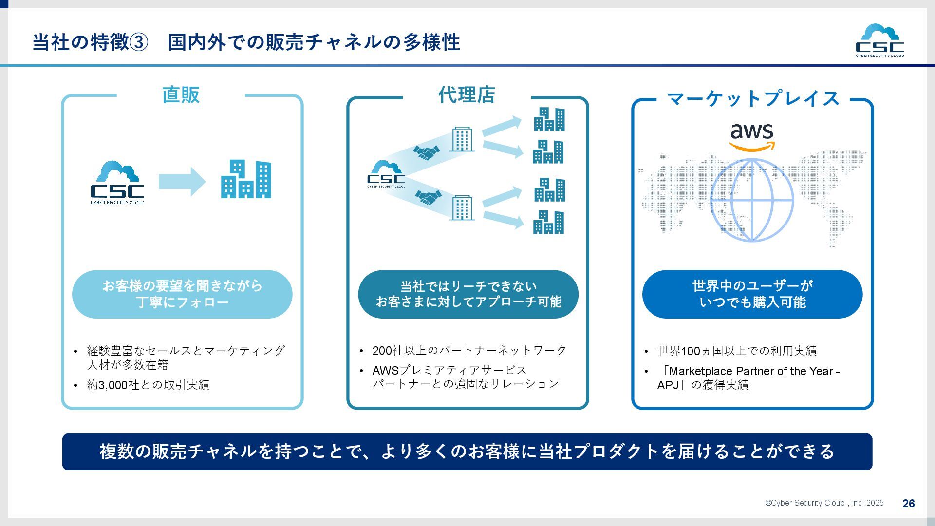 21. 26 ©Cyber Security Cloud , Inc. 2025 当社の特徴③ 国内外での販売チャネルの多様性 直販