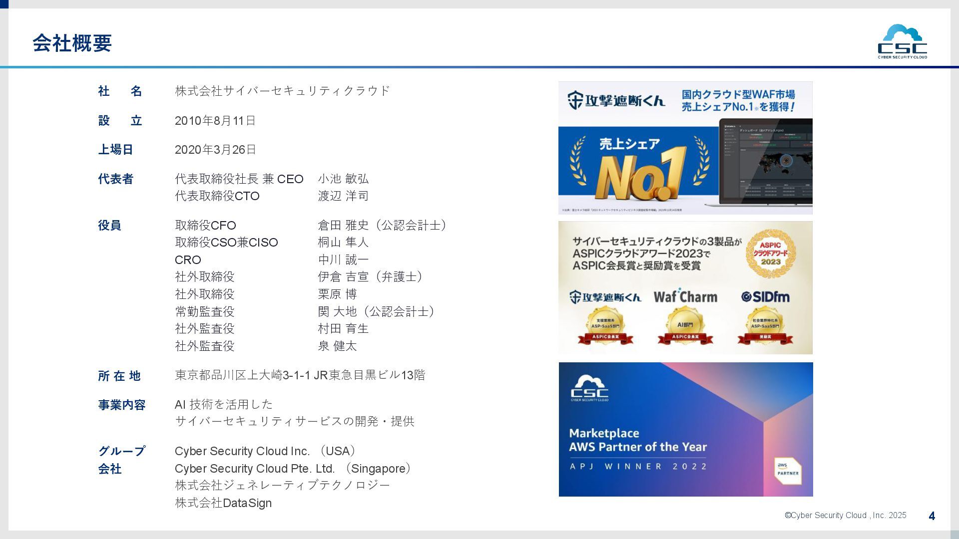 2. 4 ©Cyber Security Cloud , Inc. 2025 会社概要 社 名
