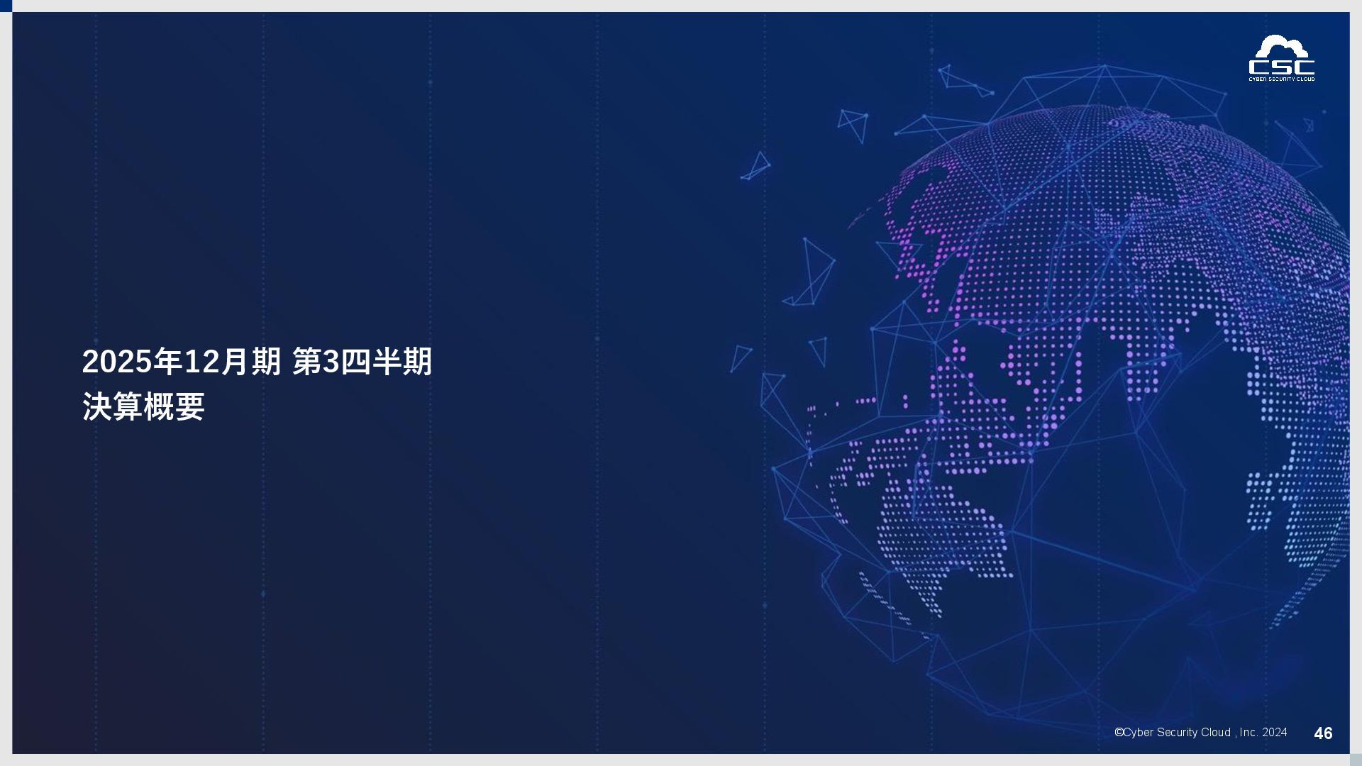 38. 47 ©Cyber Security Cloud , Inc. 2025 • 営業利益は3Q会計期間で3.6億円と、過去最高益を記録(P55を参照)。3Q累計では8.4億円となり、進捗率84.4%で着地 •