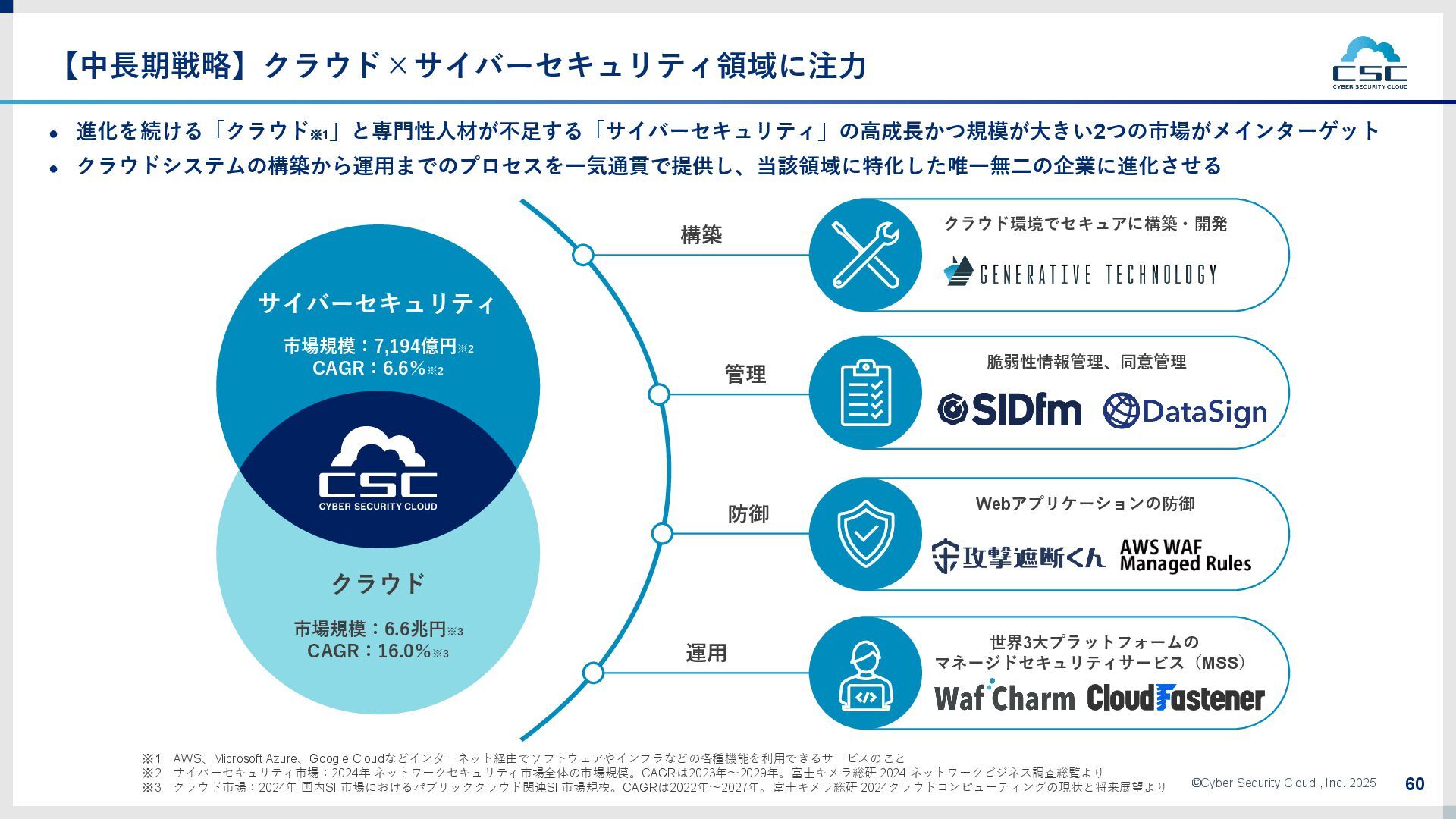50. 60 ©Cyber Security Cloud , Inc. 2025 【中長期戦略】クラウド×サイバーセキュリティ領域に注力 • 進化を続ける「クラウド※1