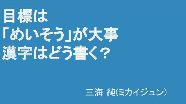 目標は 「めいそう」が大事 漢字はどう書く? 三海 純(ミカイジュン)