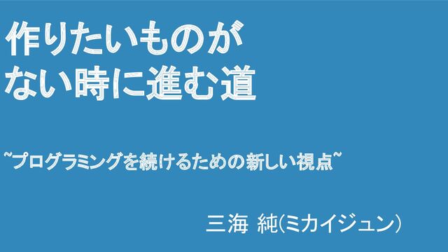 作りたいものが ない時に進む道 ~プログラミングを続けるための新しい視点~ 三海 純(ミカイジュン)