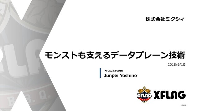 モンストも⽀えるデータプレーン技術 2018/9/10 Junpei Yoshino 株式会社ミクシィ XFLAG STUDIO