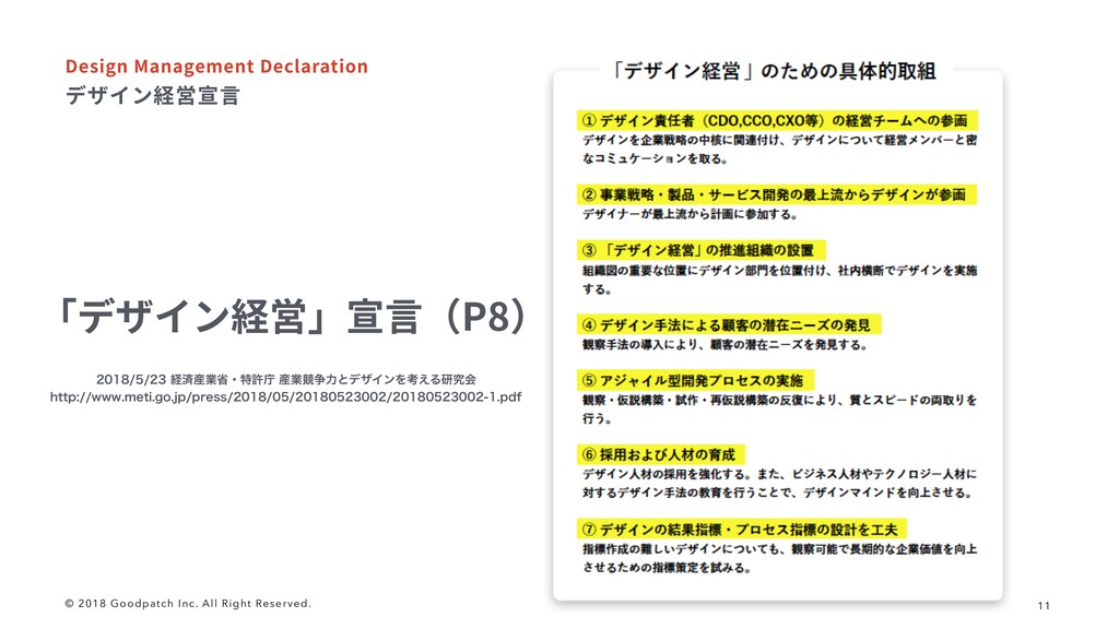 © 2018 Goodpatch Inc. All Right Reserved. 11 رؠ؎ٝ穗㌀㹑鎉 %FTJHO.BOBHFNFOU%FDMBSBUJPO