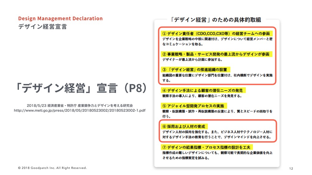 © 2018 Goodpatch Inc. All Right Reserved. 12 رؠ؎ٝ穗㌀㹑鎉 %FTJHO.BOBHFNFOU%FDMBSBUJPO