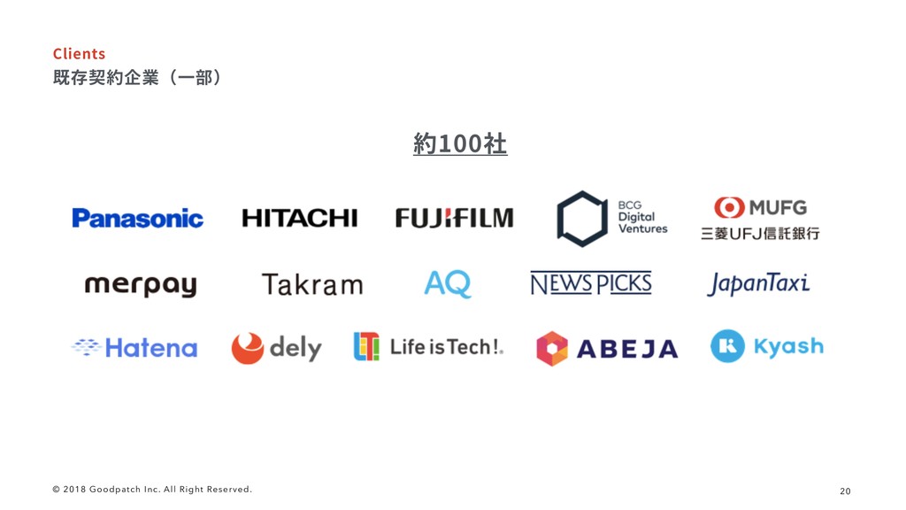© 2018 Goodpatch Inc. All Right Reserved. 20 傀㶷㤍秈⟰噟♧鿇 $MJFOUT