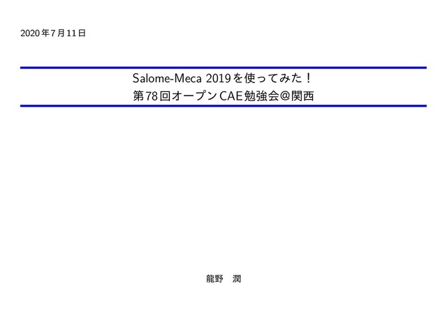 Code_Aster News ”salome_meca 2019 under LGPL license is available for download”,(accessed 2020-07-11). [3] EDF. Code_Aster training ”Module 1/01-Presentation of code_aster and Salome-Meca”,(accessed 2020-07-11). [4] SimulEase. Code_Aster for Windows ”Salome-Meca 2019 for Windows”,(accessed 2020-07-11). [5] オープンCAE学会 資料翻訳委員会. Code_Aster training ”Module 1/01-overview”,(accessed 2020-07-11). [6] FS氏. OpenCAE Users Wiki ”SALOME-Mecaの使用法解説”,(accessed 2020-07-11). [7] 藤井成樹氏. オープンCAE学会 オープンCAEワークショップ2011 ”SalomeMecaによ る構造解析(線形・非線形)の紹介”,(accessed 2020-07-11). All content is licensed under an open-source, ’copyleft’ license: 表示 4.0 国際 (CC BY 4.0) 20