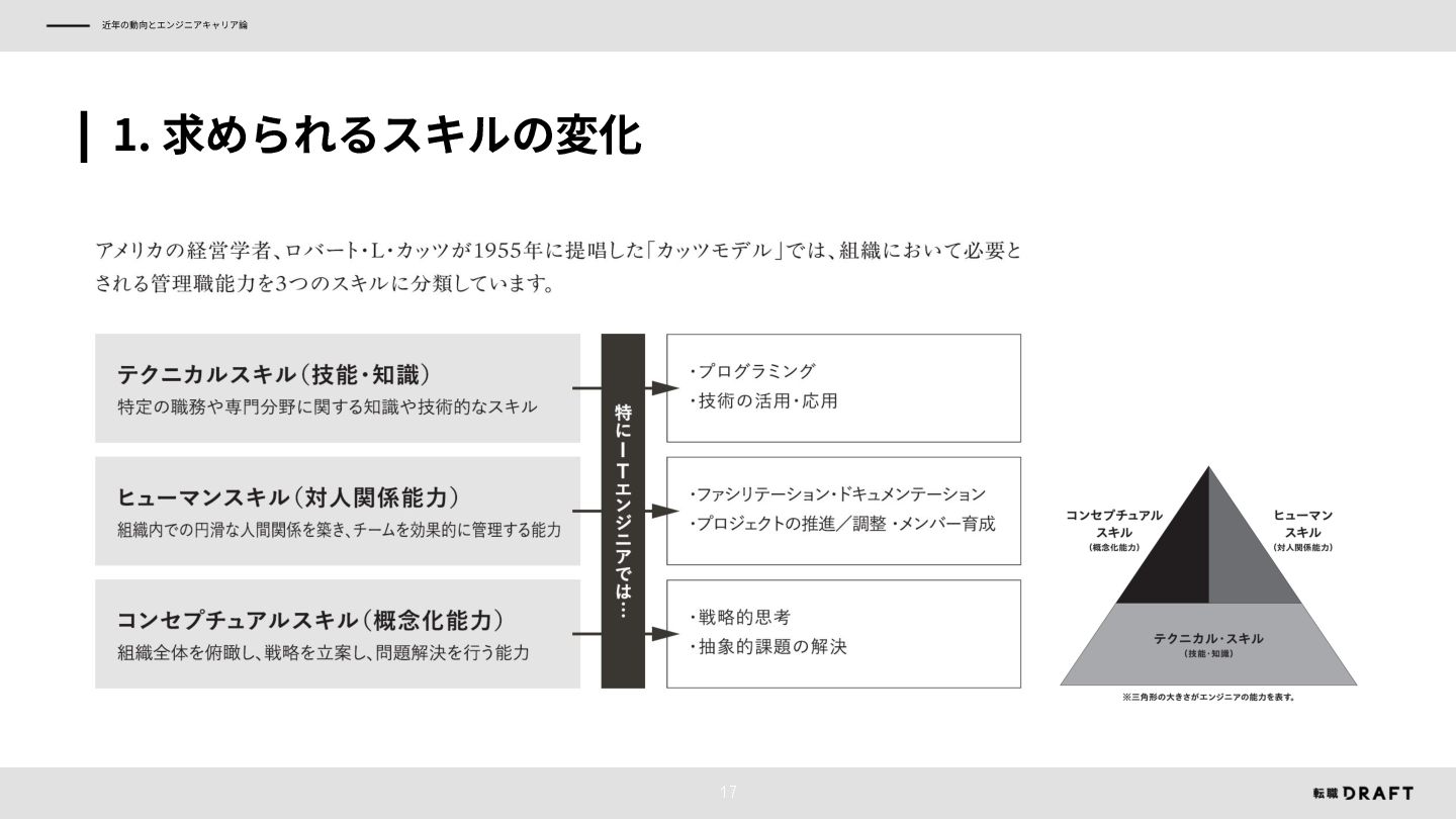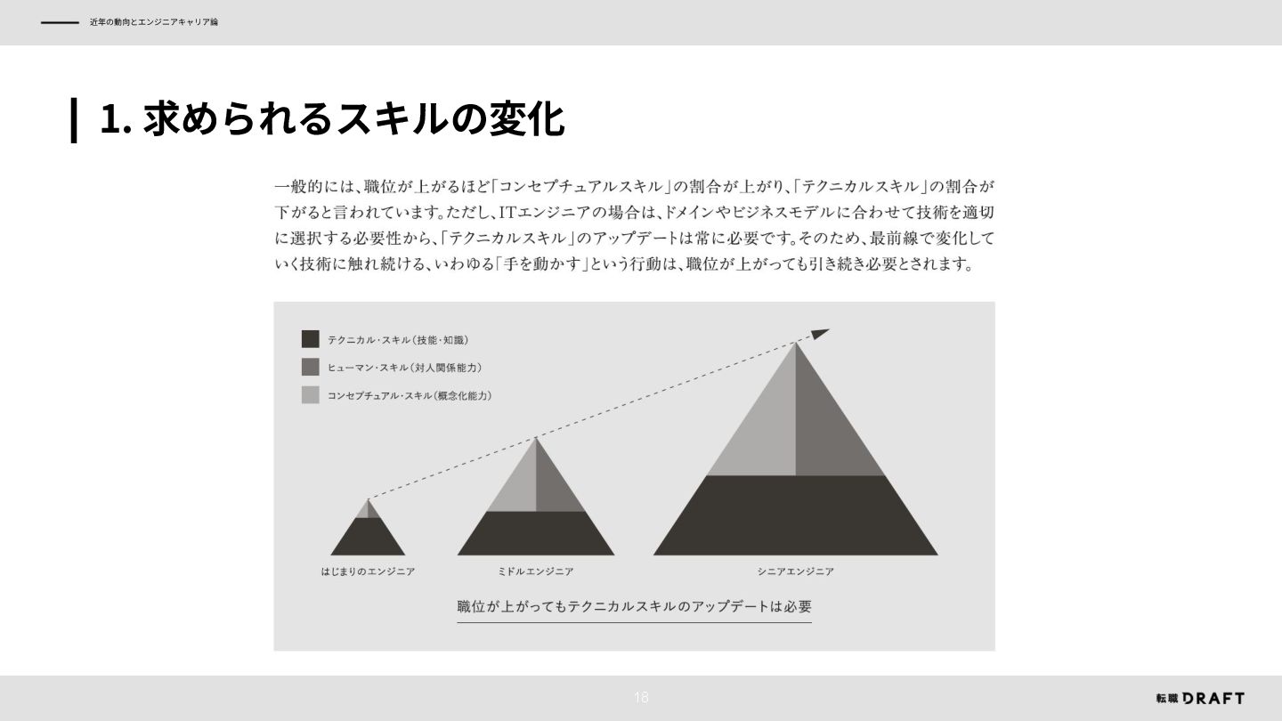 17 1. 求められるスキルの変化 近年の動向とエンジニアキャリア論