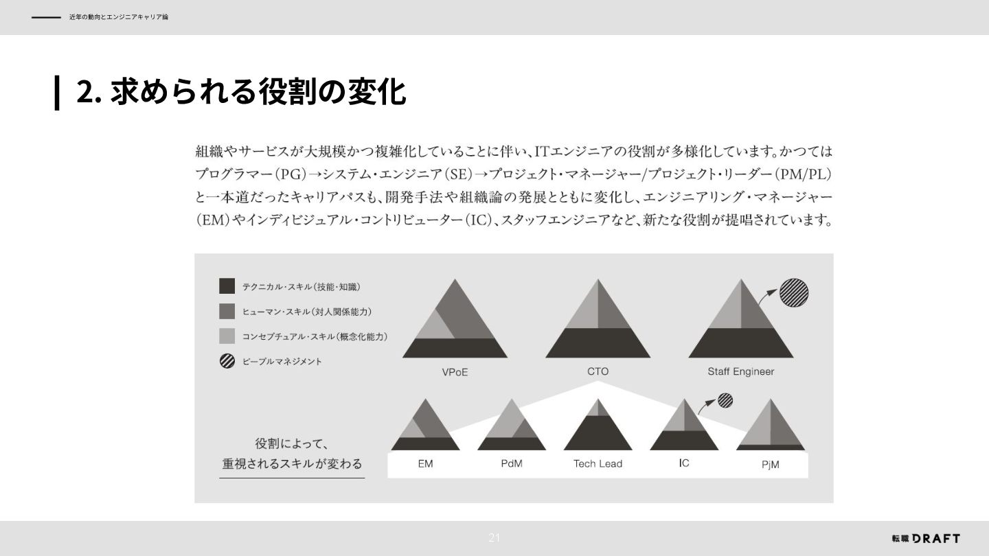 21 2. 求められる役割の変化 近年の動向とエンジニアキャリア論