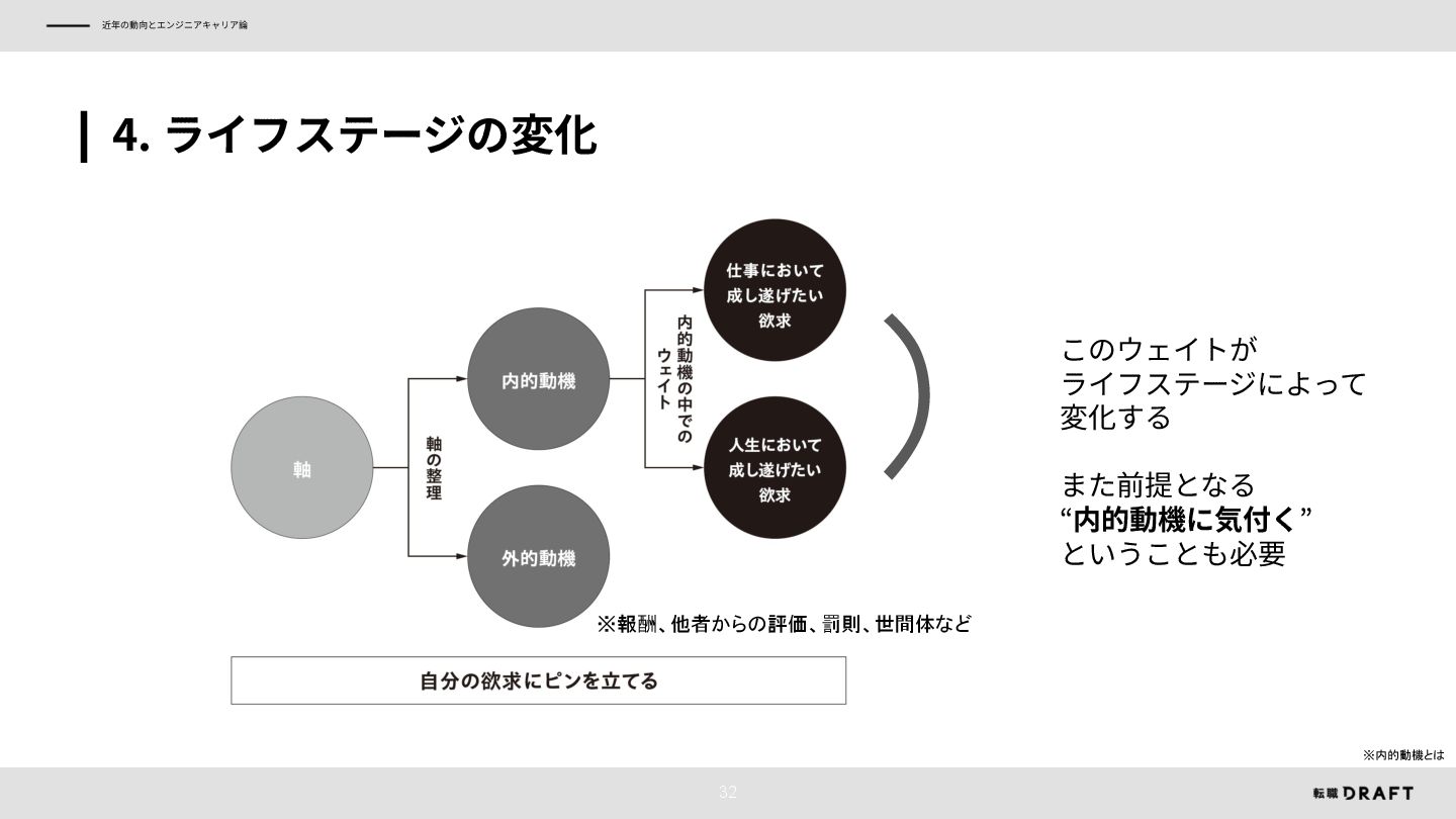 ※内的動機とは ※報酬、他者からの評価、罰則、世間体など 近年の動向とエンジニアキャリア論
