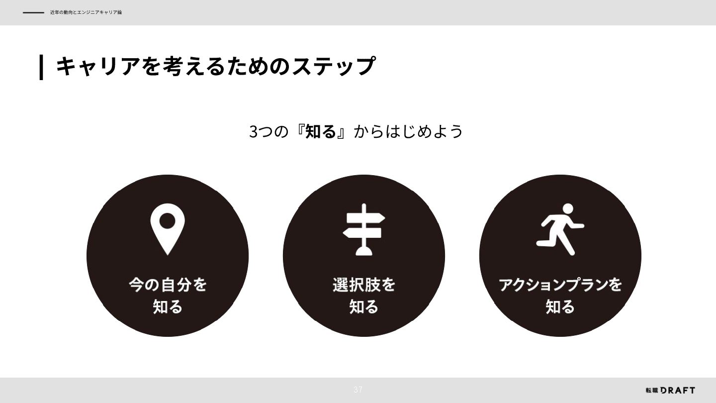 37 キャリアを考えるためのステップ 3つの『知る』からはじめよう 近年の動向とエンジニアキャリア論
