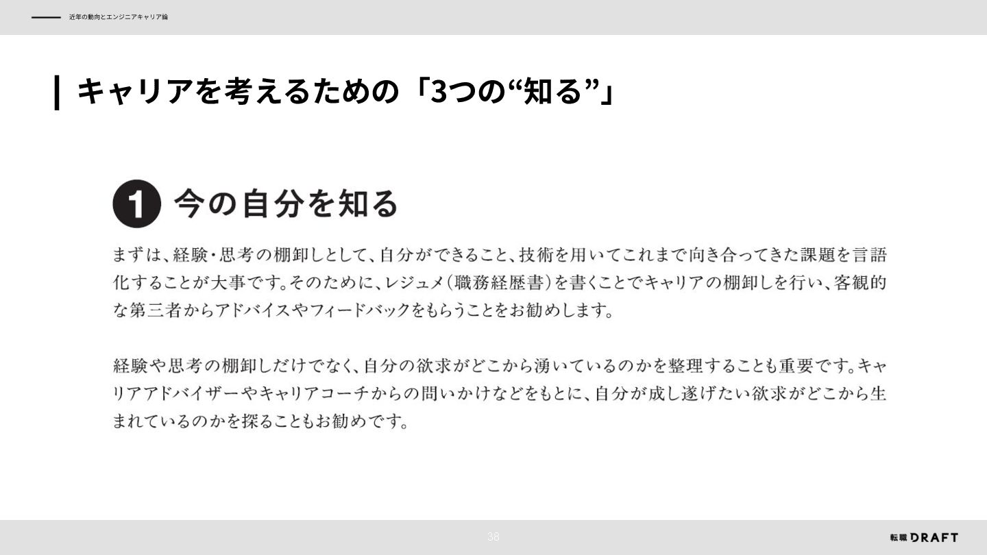 38 キャリアを考えるための「3つの“知る”」 近年の動向とエンジニアキャリア論