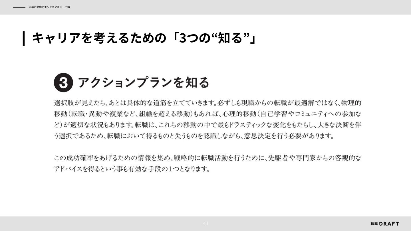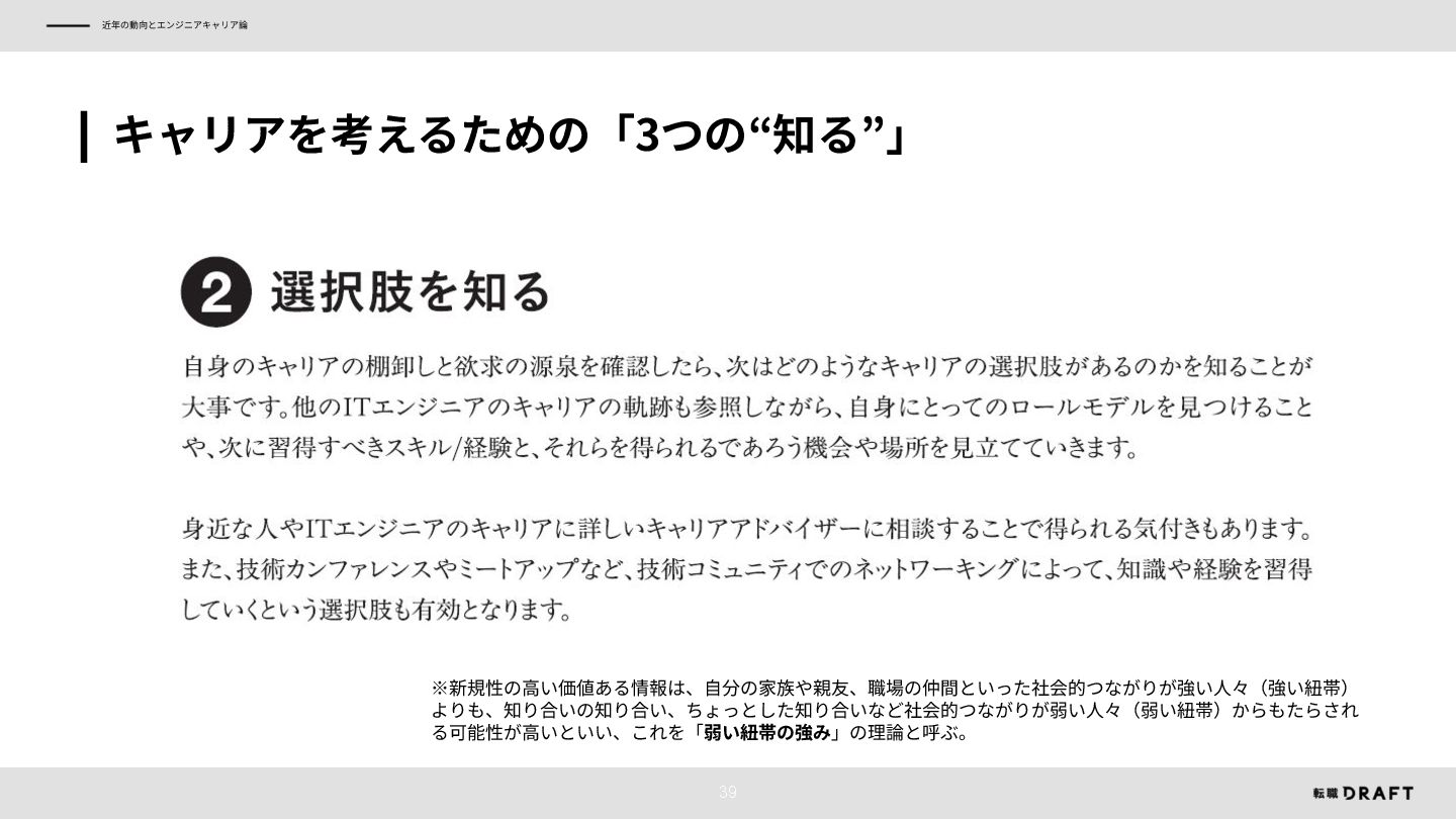 40 キャリアを考えるための「3つの“知る”」 近年の動向とエンジニアキャリア論