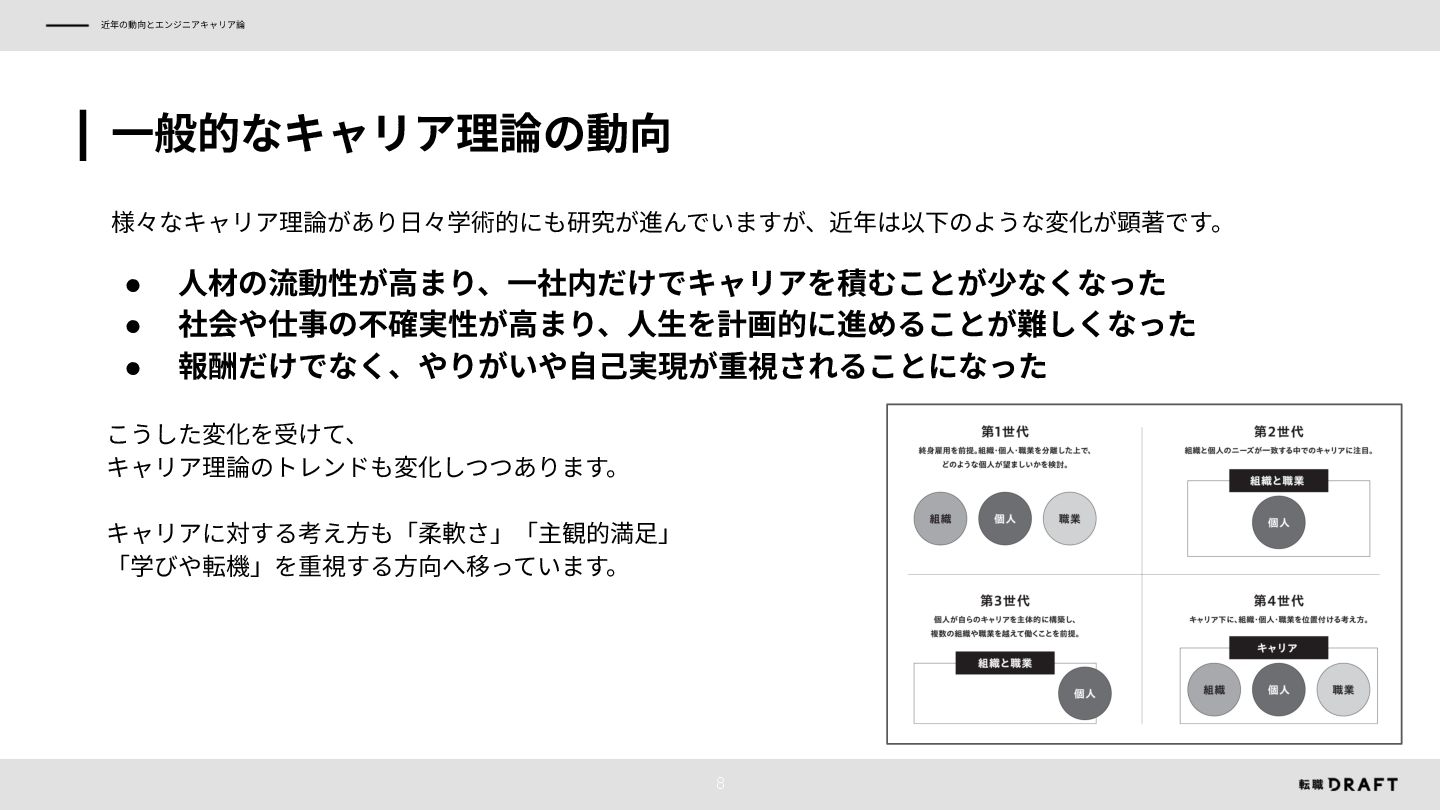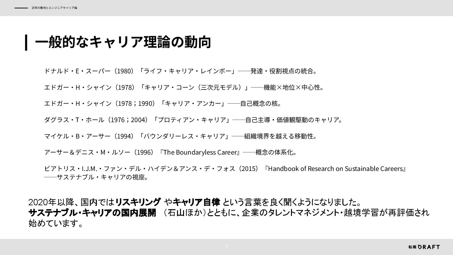 ⼀般的なキャリア論の動向 6 近年の動向とエンジニアキャリア論