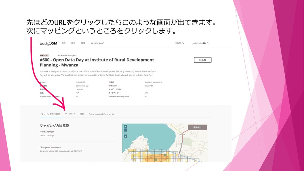 タンザニア地図作成 #600 タスクの作業⽅法 1A119134 畑 樹莉杏
