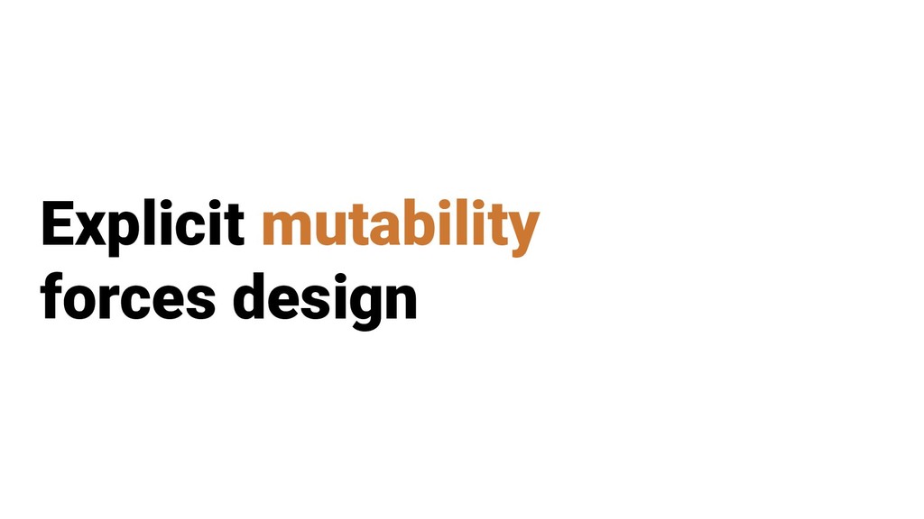 - Explicit mutability forces design