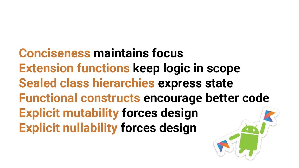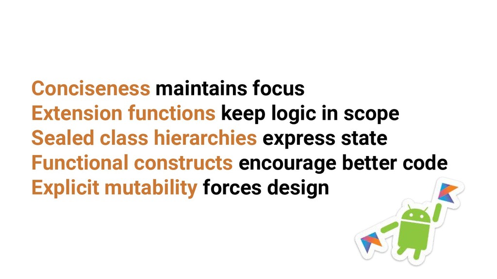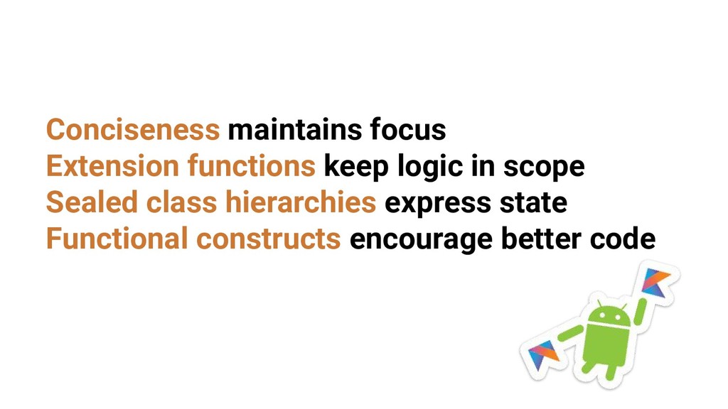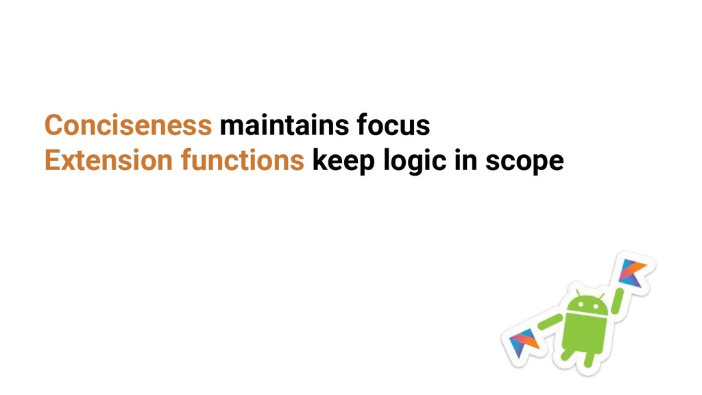 - Extension functions keep logic in scope