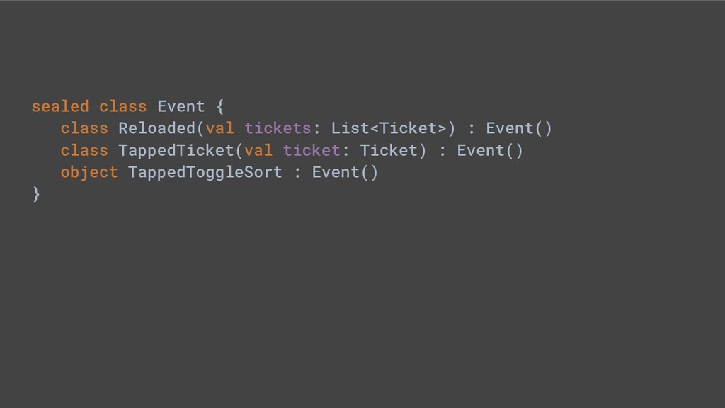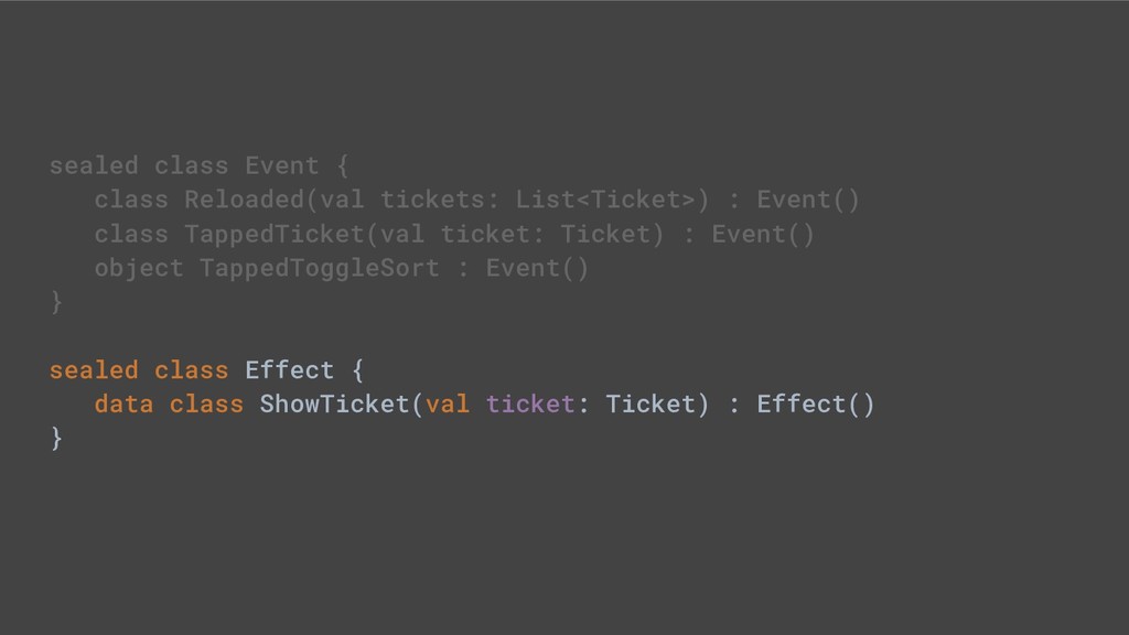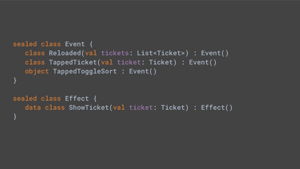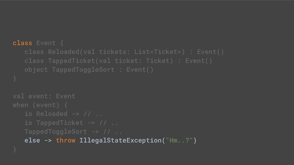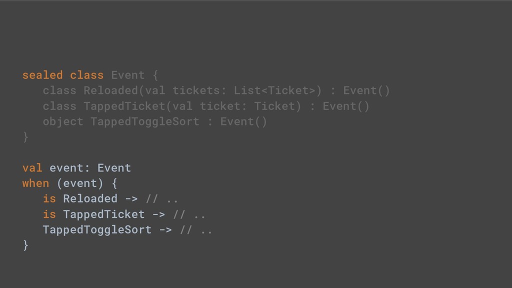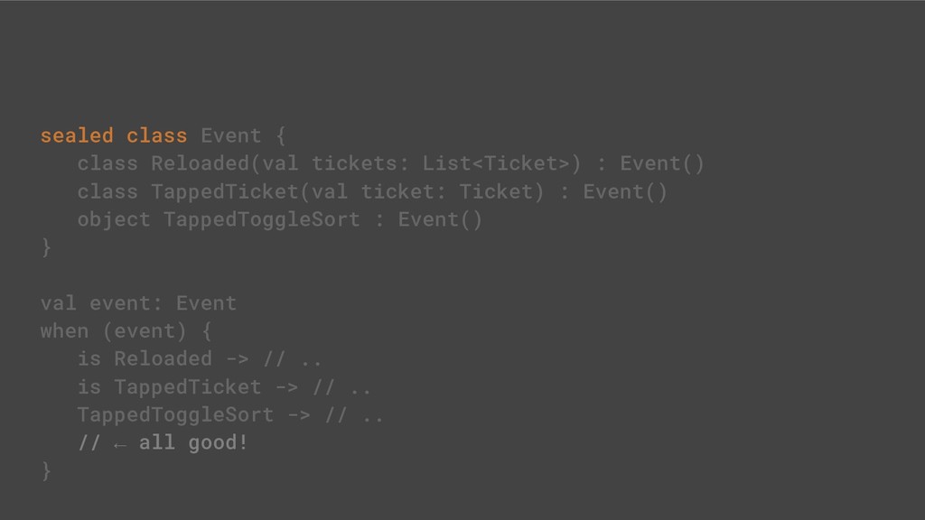 - Sealed class hierarchies express state