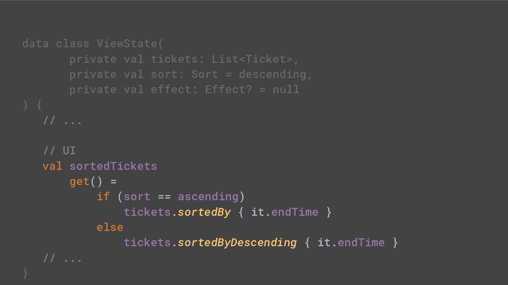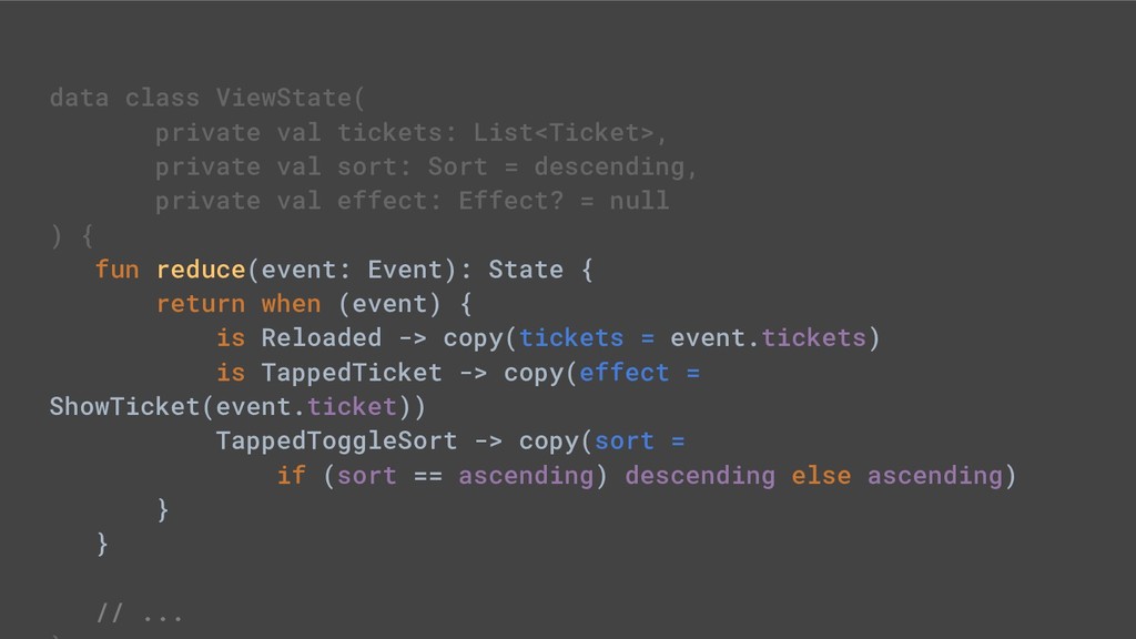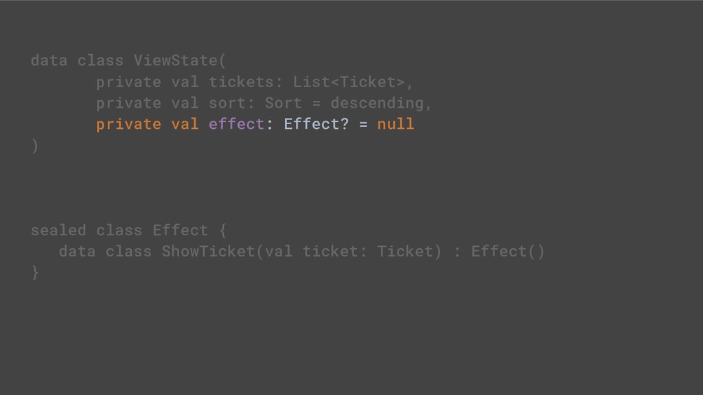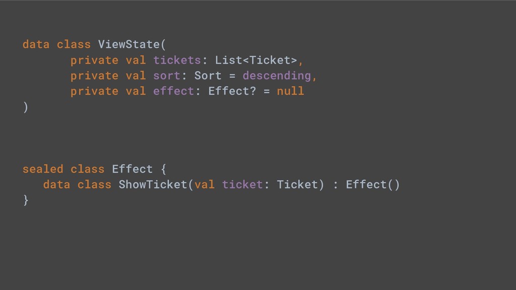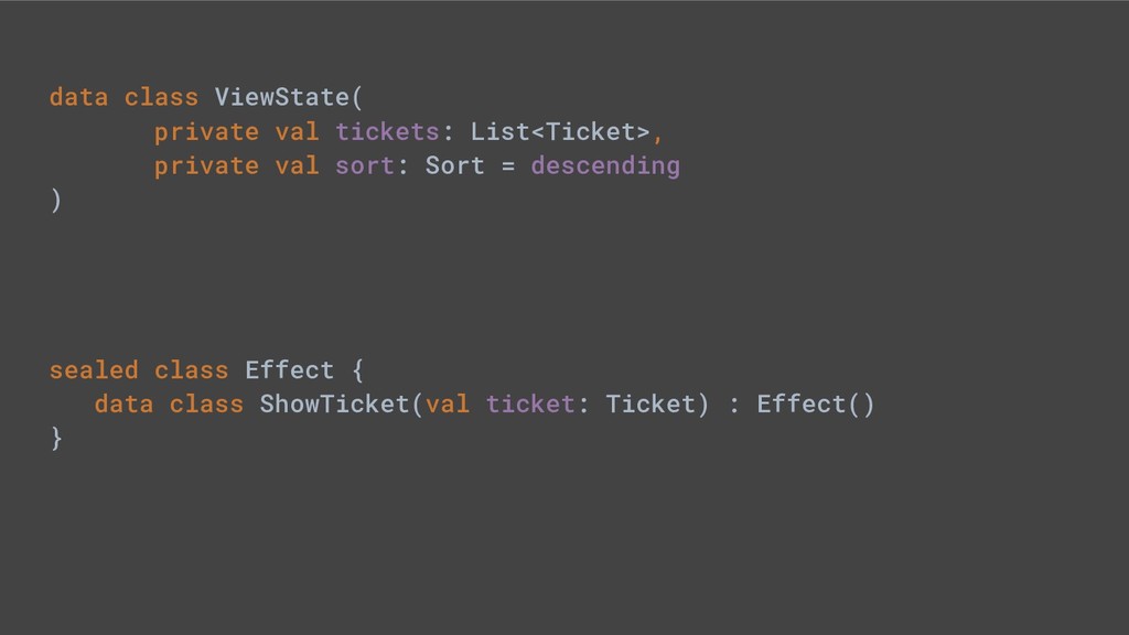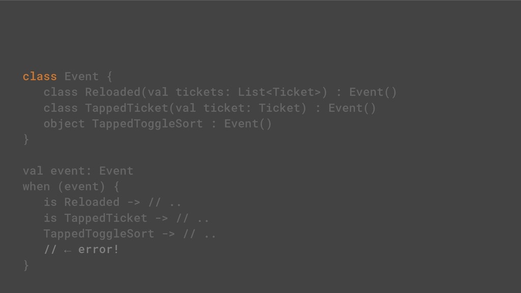 - Sealed class hierarchies express state
