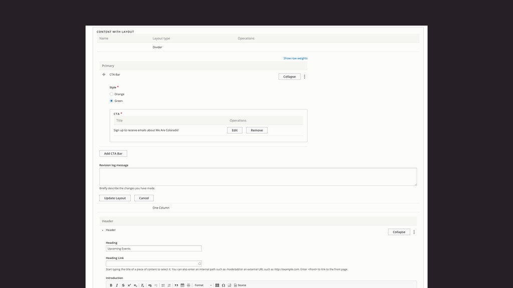 If you use the Paragraphs module and wish there was a way to more easily control the layout of referenced paragraphs on a particular node, this might be just what you were looking for. Entity Reference with Layout (ERL), a new module for Drupal 8, combines structured content (a la Paragraphs) with expressive layout control (a la Layout Discovery in core). Now you can quickly add new sections without leaving the content edit screen, choose from available layouts, add text or media to specific regions, drag them around, edit them, delete them, add more, and so on. The experience is easy-to-use, fast, and expressive.