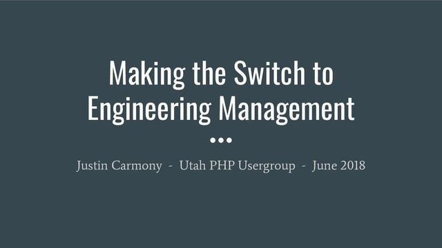 Take a deep breath: it's okay. It is possible to make a switch to engineering management and still have a fulfilling job. We'll discuss the basics of being an engineering manager, what it's like to make the switch, and how to prepare for it. We'll discuss techniques you can use to be successful, as well as common pitfalls you can run into. So whether you're an engineer looking to prepare for the possibility in the future, or a seasoned manager looking for some ways to improve (since we all can improve), come learn from Justin's experience helping mentor engineers for leadership and management roles.