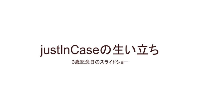 2019年12月6日、justInCase3周年記念感謝祭で使われた資料です。 3年間の喜怒哀楽、地獄と天国、色んな想いを、スライドに落としてみました。
