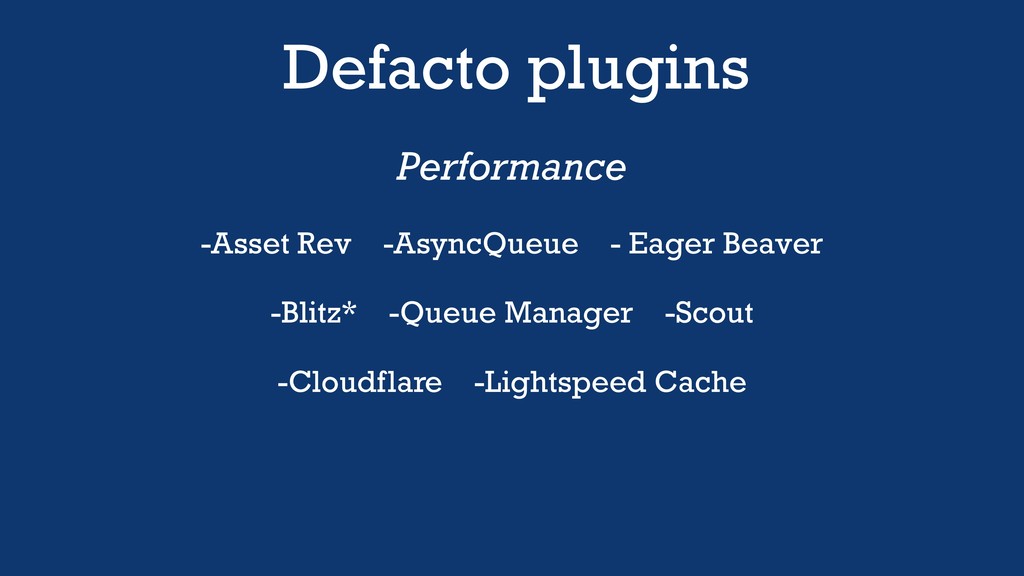 Defacto plugins Performance -Asset Rev -AsyncQueue - Eager Beaver -Blitz*