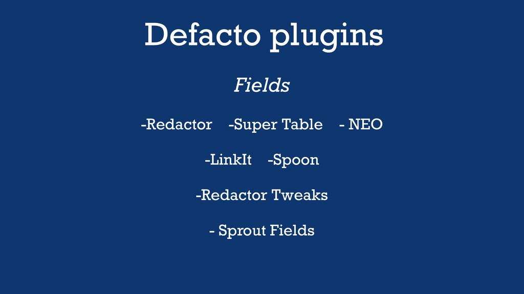 Defacto plugins Fields -Redactor -Super Table - NEO -LinkIt -Spoon