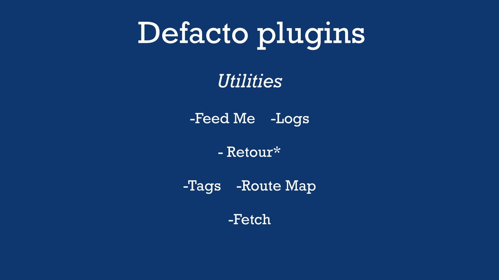 Defacto plugins Utilities -Feed Me -Logs - Retour* -Tags -Route