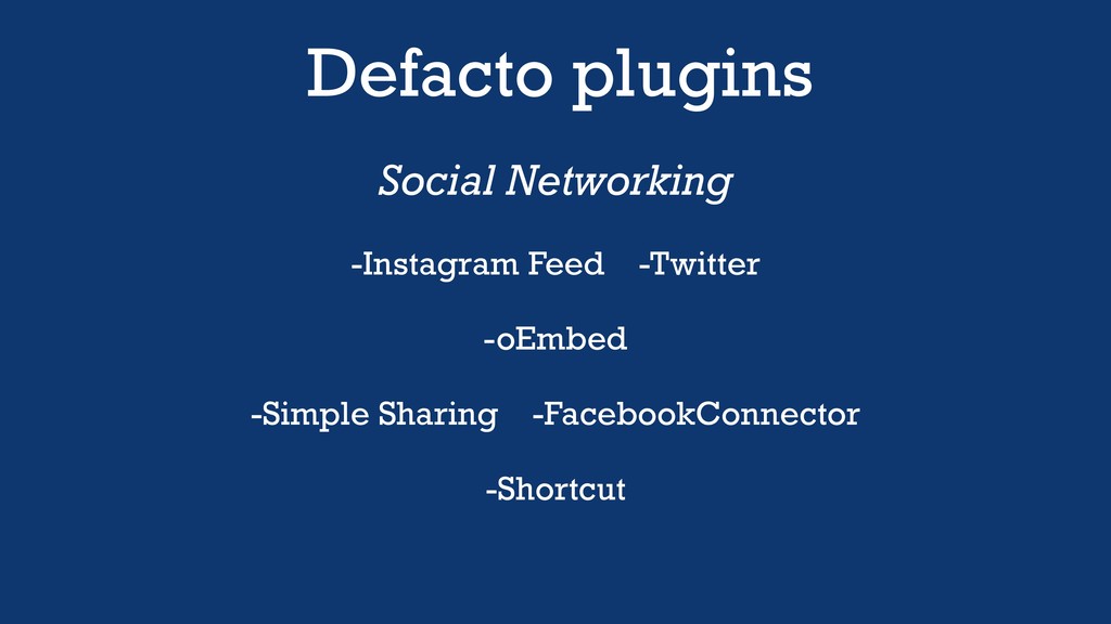 Defacto plugins Social Networking -Instagram Feed -Twitter -oEmbed -Simple Sharing