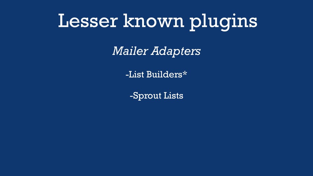 Lesser known plugins Mailer Adapters -List Builders* -Sprout Lists